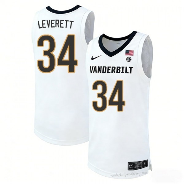 Jayden Leverett #34 Commodores White Basketball NCAA Jersey | Men's Authentic Cut