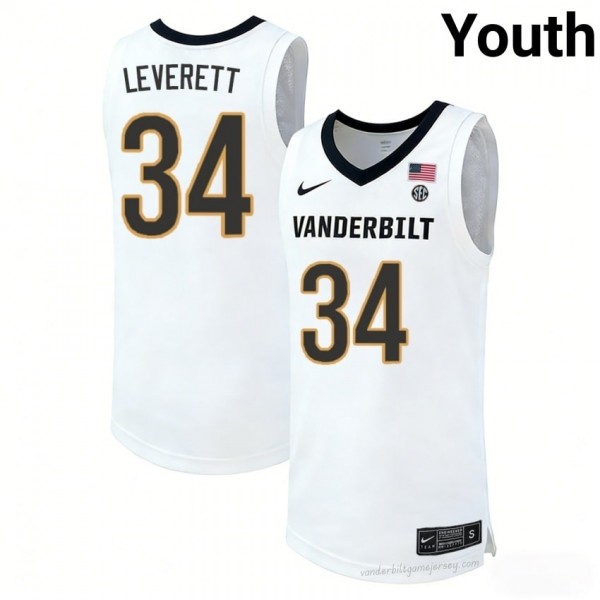 Youth Jayden Leverett #34 Vanderbilt White NCAA Basketball Jersey | Anchor Down Edition